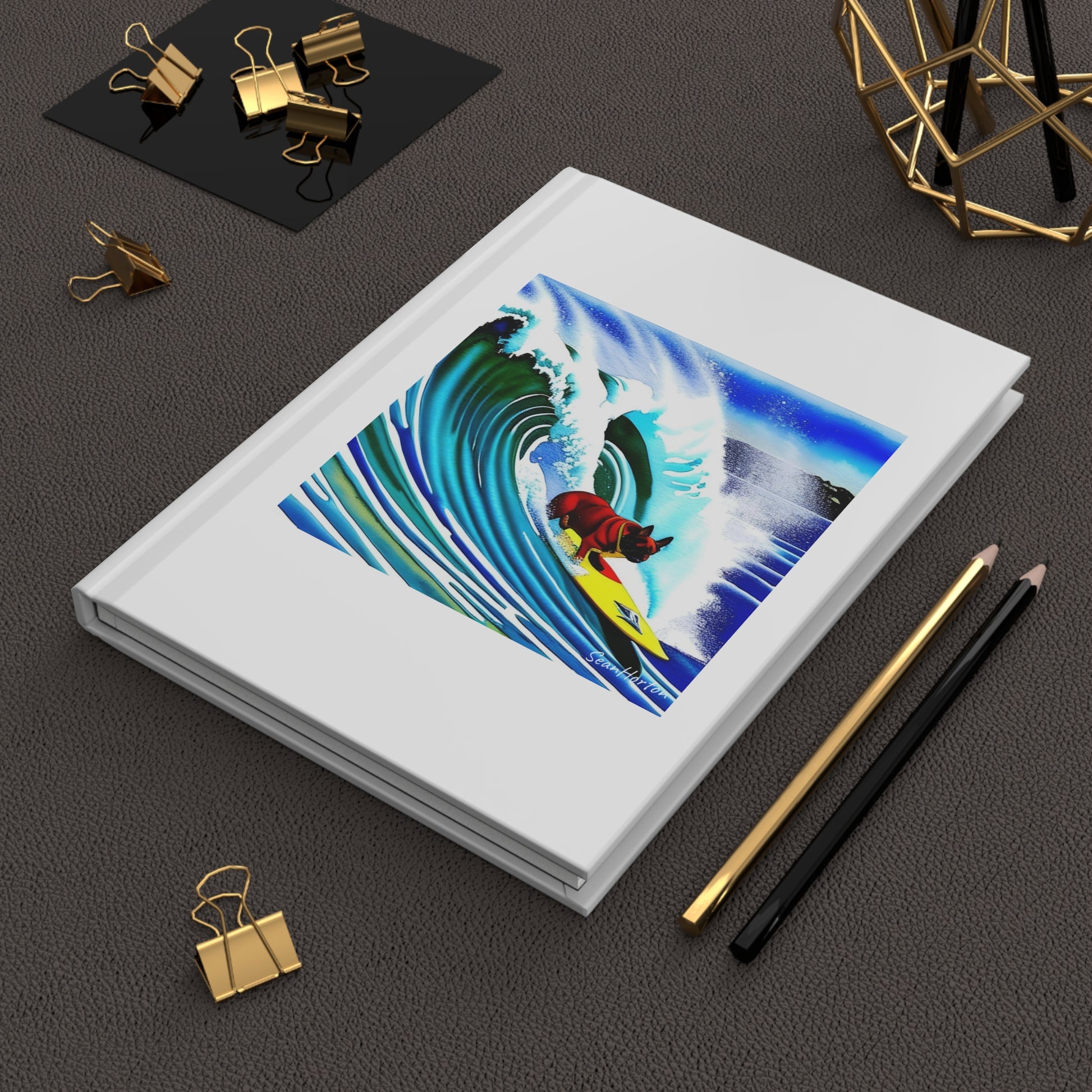Surfing Frenchie Hardcover Journal Matte